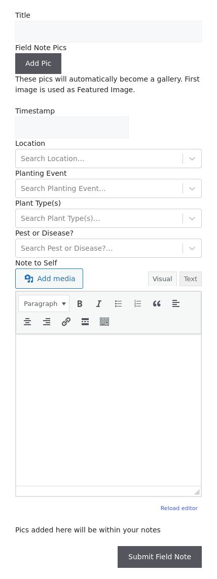 FarmWP is a Data Management Web App for Grower’s that allows you to record Events, like Plantings and Harvests, create Records, like Equipment Settings, create Land Assets, like Fields, Bed Blocks and Beds and select them when taking Field Notes or recording Plantings or Harvests while in the field on your phone; as long as you have a cell or WiFi signal
